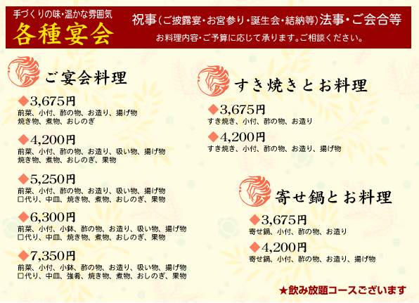 ) 宴会料理・鍋 等