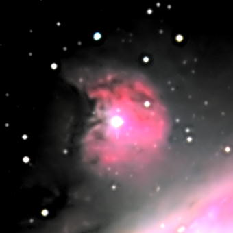 | コメント | いつもはM42の付け足しみたいに撮られている物を強拡大してみました。あまり明るくないので、 狭帯域フィルターは最初から考えていません。天気は良かったのですが、シンチレーションは悪く、 普通の人なら載せないような画像です。 |