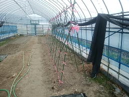 ハウスに雪支えとストーブを設置して、冬を迎える準備万端。