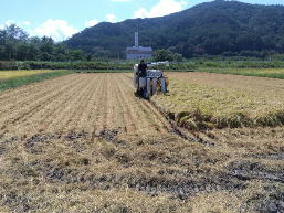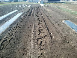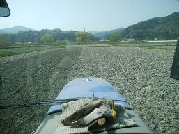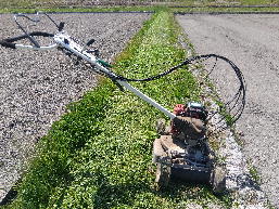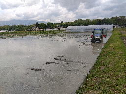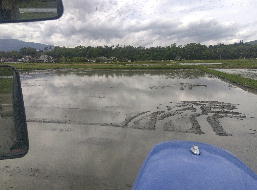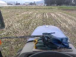 田が乾くのを待ちきれずに、田起こしを決行。なんとかなった。ナイスロード脇のたんぼを西に向かって。
