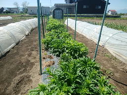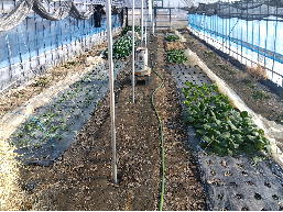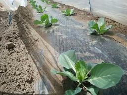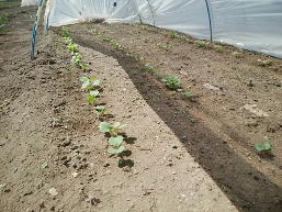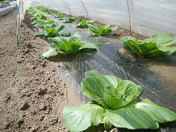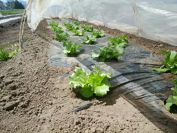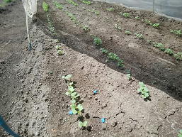葉物野菜が異常な高騰を続けている昨今、我が家のビニールハウスでは例年通り、野菜達が育っています。左、定植直後のレタス第二弾。中、レタス第一弾。右、キャベツ。