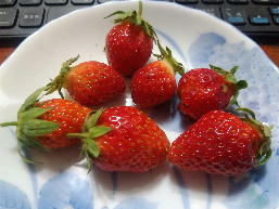 左、仕上げの代かき。右、初採れのイチゴ。ちいさ~い。