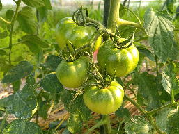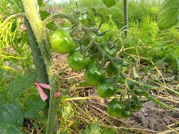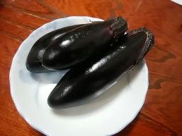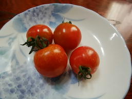 左、ミニトマトが採れ始めた。右、ナスも採れ始めた。