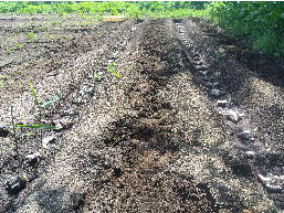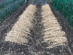 牛蒡の畝を作って、播種をした。畝を作るのは大変だが、収穫の楽さを考えると止められない。
