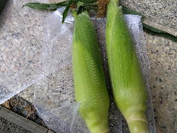 トウモロコシとキュウリを初収穫。どちらも旨いよう。