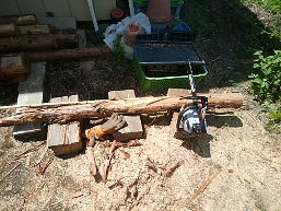 昨日採って来た材を割ります。ナラはクセが強くて割りにくい。