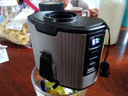 左、夏の暑さに耐えきれず、作業着に付けるファンを入手。なんとなく涼しい?右、蕎麦の芽が出た。
