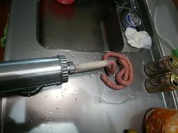 なぜかウインナーの充填器を購入したので、早速ウインナーを手作り。スモークハウスを動かすのが面倒だったので、今回はボイルソーセージ。