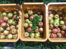左、中、ツガルを収穫。ちょっと少ない。右、今年は不作だったプルーン。