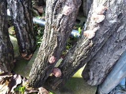 左、フジとデリシャスリンゴを収穫。ちょっと早いかなあ。右、何と!椎茸がいっぱい出てきたぁ~!うれぴい~。