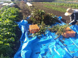オカヒジキを本格収穫開始。バリカンで刈り取るのだ。